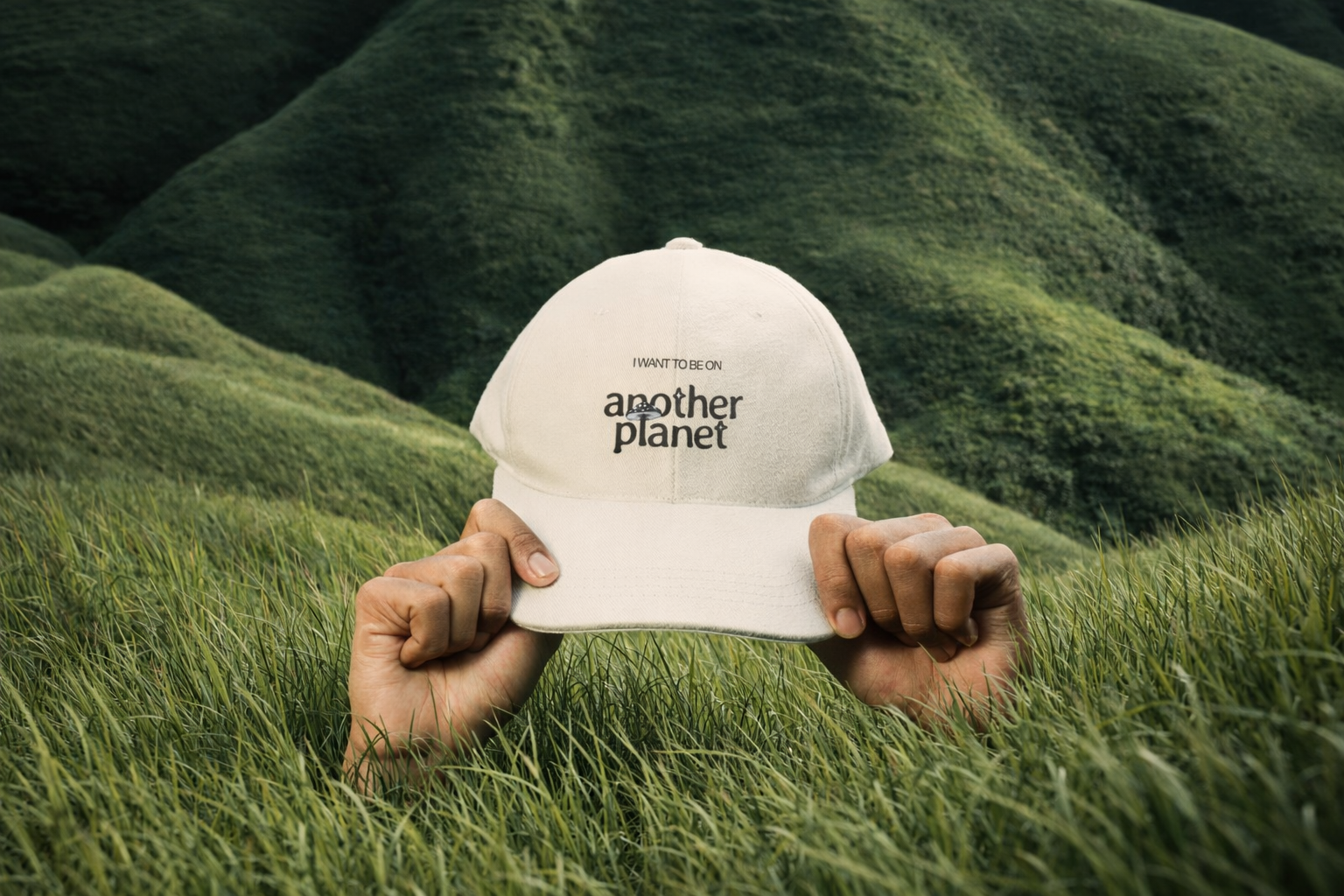 The design uses simple typography and a direct catchphrase, “I want to be on another planet”, to blur product and mindset. By placing the brand’s name inside the sentence, the shirt becomes both an ad and a personal statement: design as identity, not just merchandise.